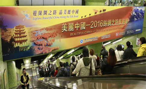 據(jù)介紹,此次在港鐵投放大型旅游廣告首次采用了國家旅游局“全年整租”、相關(guān)方旅游部門聯(lián)合投放的方式,著眼于全年旅游廣告整體規(guī)劃,不但優(yōu)化了廣告性價比,創(chuàng)新了投放形式,形成了合力,更體現(xiàn)了服務(wù)地方的宗旨。廣告選址在港鐵灣仔站大堂扶梯處,每天往來乘客超過30萬人次,受眾廣泛。廣告內(nèi)容以絲綢之路為主線,貫穿沿海及內(nèi)陸省份,向港澳同胞展示了祖國壯美的山水風(fēng)光、悠久的文物古跡和多彩的民族風(fēng)情,將持續(xù)吸引港澳同胞赴內(nèi)地旅游,進(jìn)一步鞏固港澳同胞入境旅游基礎(chǔ)市場。