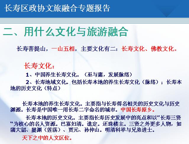為政協重慶市長壽區委員會作文化與旅游融合專題報告